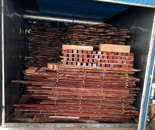 2、干燥一般分兩階段進(jìn)行,首先進(jìn)行預(yù)干,預(yù)干一般采用自然氣干,放在院內(nèi)通過空氣流動(dòng)和水分蒸發(fā)來達(dá)到氣干的目的,使紅木的含水率降低到20%—30%之間。氣干之后,再放入專門的紅木干燥設(shè)備內(nèi)進(jìn)行干燥處理,要求干燥至水分含量在 8%—12%間。